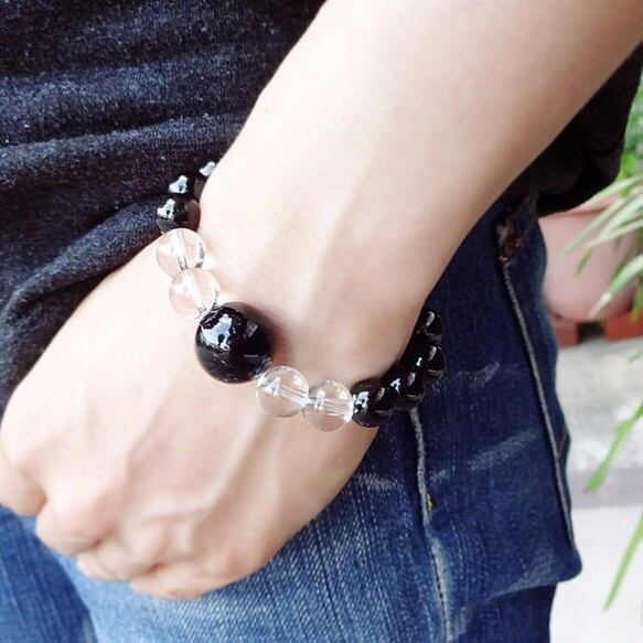 ”ワイルド”なブレスレットに仕上がりました。チベット産モリオンの圧倒的な存在感はもちろん、脇を固めるハイパーシーンの独特の雰囲気、そしてゴールドとシルバーに輝くゴールデンオーラとヘマタイトが対極に陣取ります。